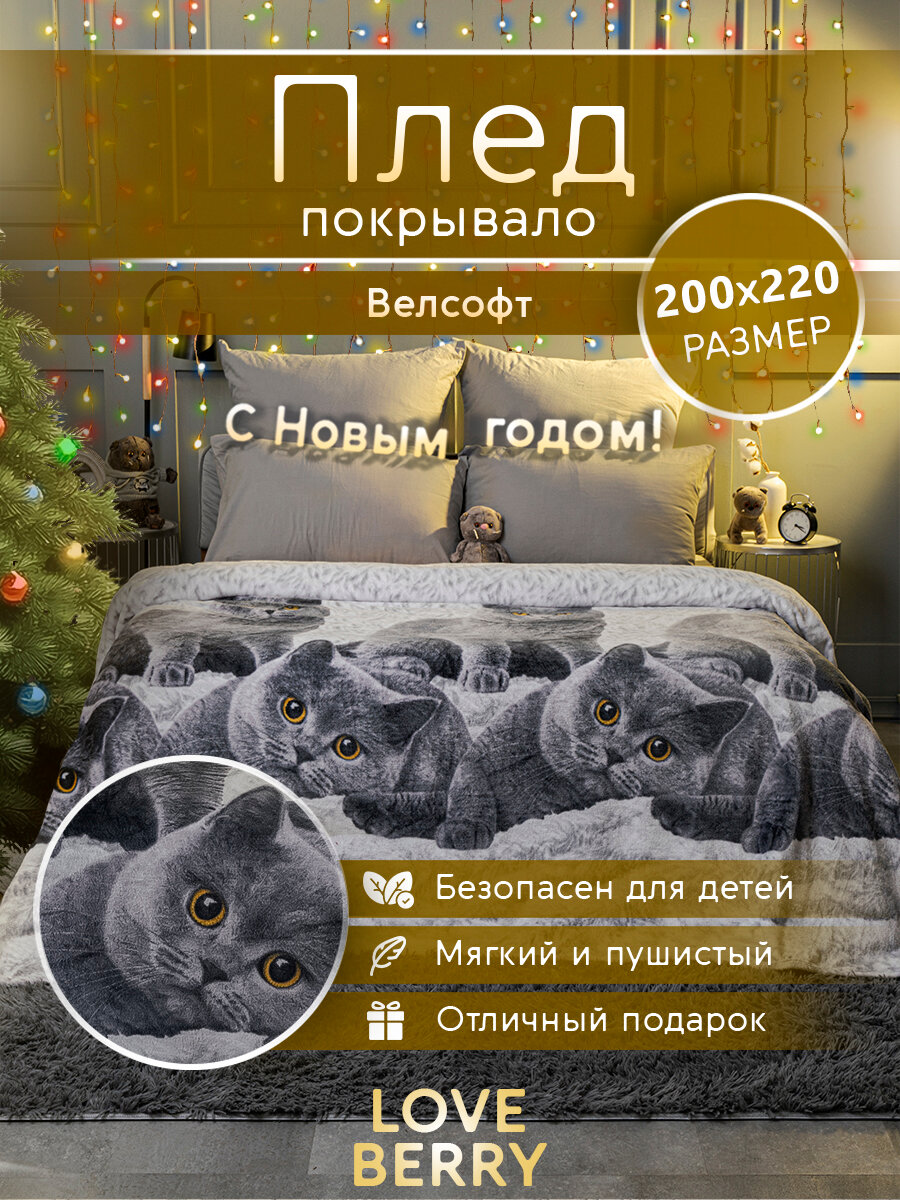 Плед LOVEBERRY из велсофта 200х220 см, Евро, Британцы информация: