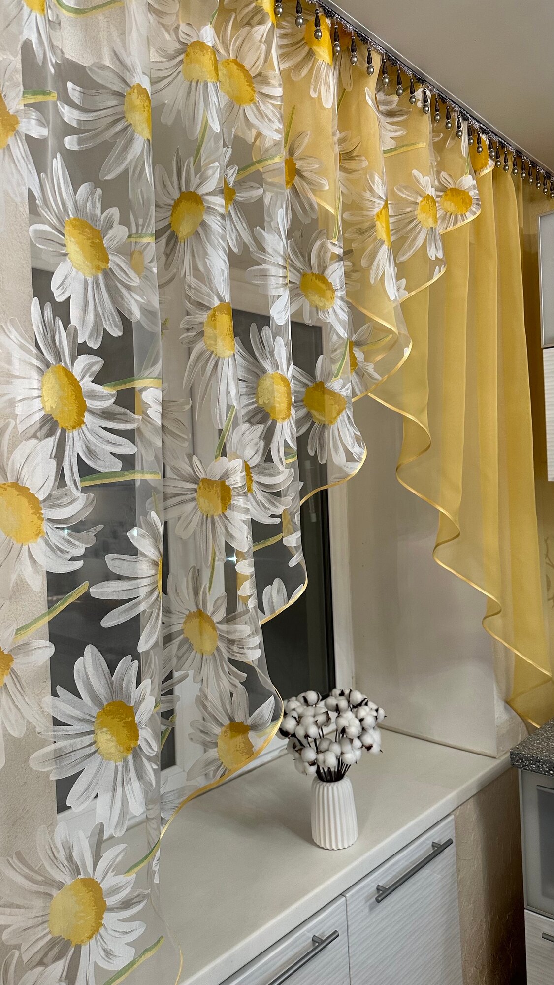 10 цен на Кухонная шторка ромашка желтая, ширина 3м, высота 1,7м