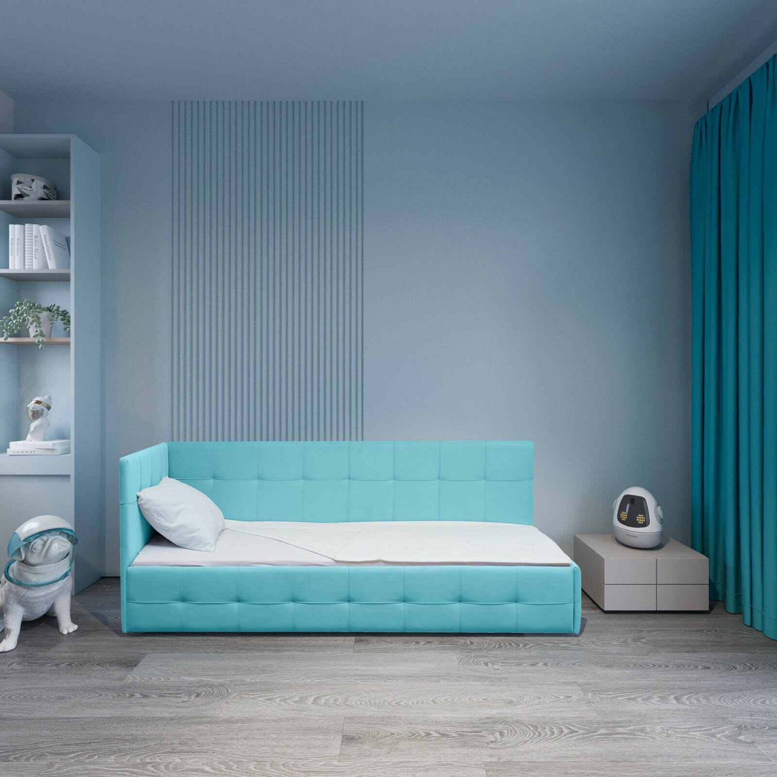 10 цен на Кровать-диван Банни 2000*900 бирюзовый велюр, с матрасом и ящиком для хранения
