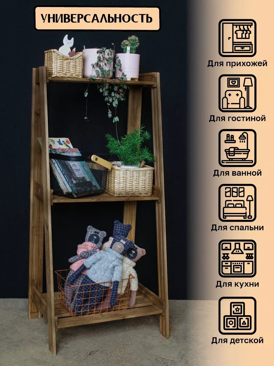 10 цен на Стеллаж лесенка деревянный 115*53,5*40 см, 3 полки