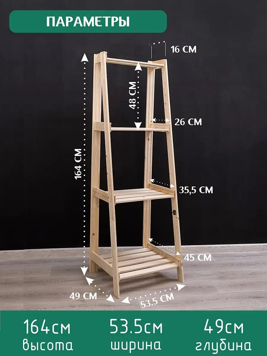 Стеллаж лесенка деревянный 164*53,5*49 см, 4 полки информация: