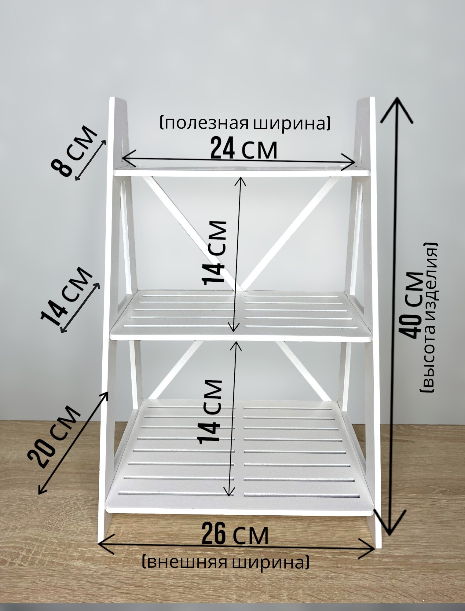 Этажерка трехярусная настольная деревянная 26*20*40 см, Белые перфорированные полки информация: