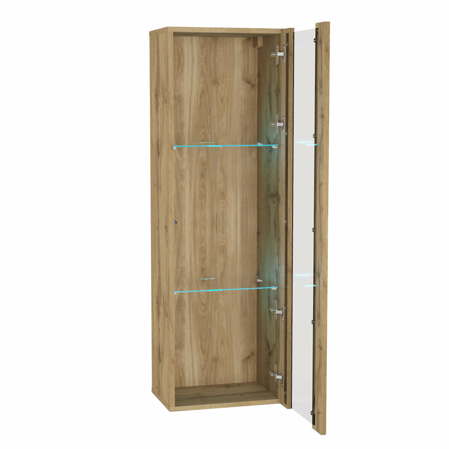Шкаф пенал, шкаф витрина, шкаф навесной, с подсветкой, POINT 21, Дуб Вотан, 40х126х29 (ШхВхГ) информация: