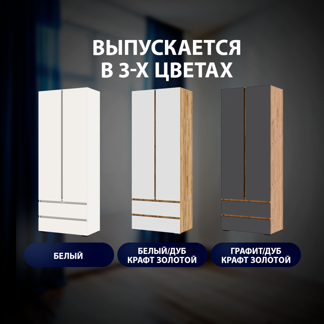 Шкаф распашной Хелен ШК 01 с ящиками, серый графит/дуб крафт золото 12 590 ₽
