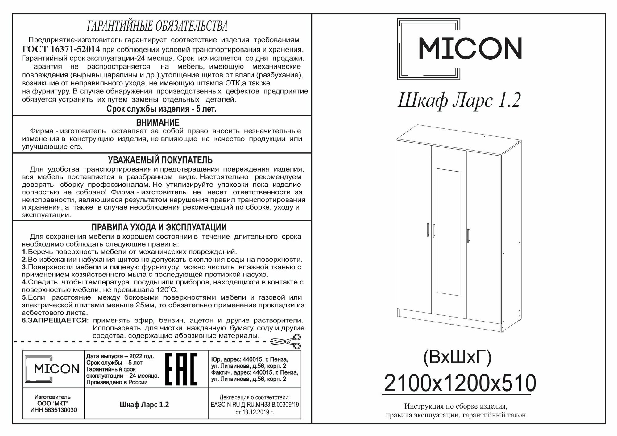 | Комплектация | Шкаф поставляется в разобранном виде, упакован в гофрокартон, в комплекте фурнитура и подробная инструкция по сборке |