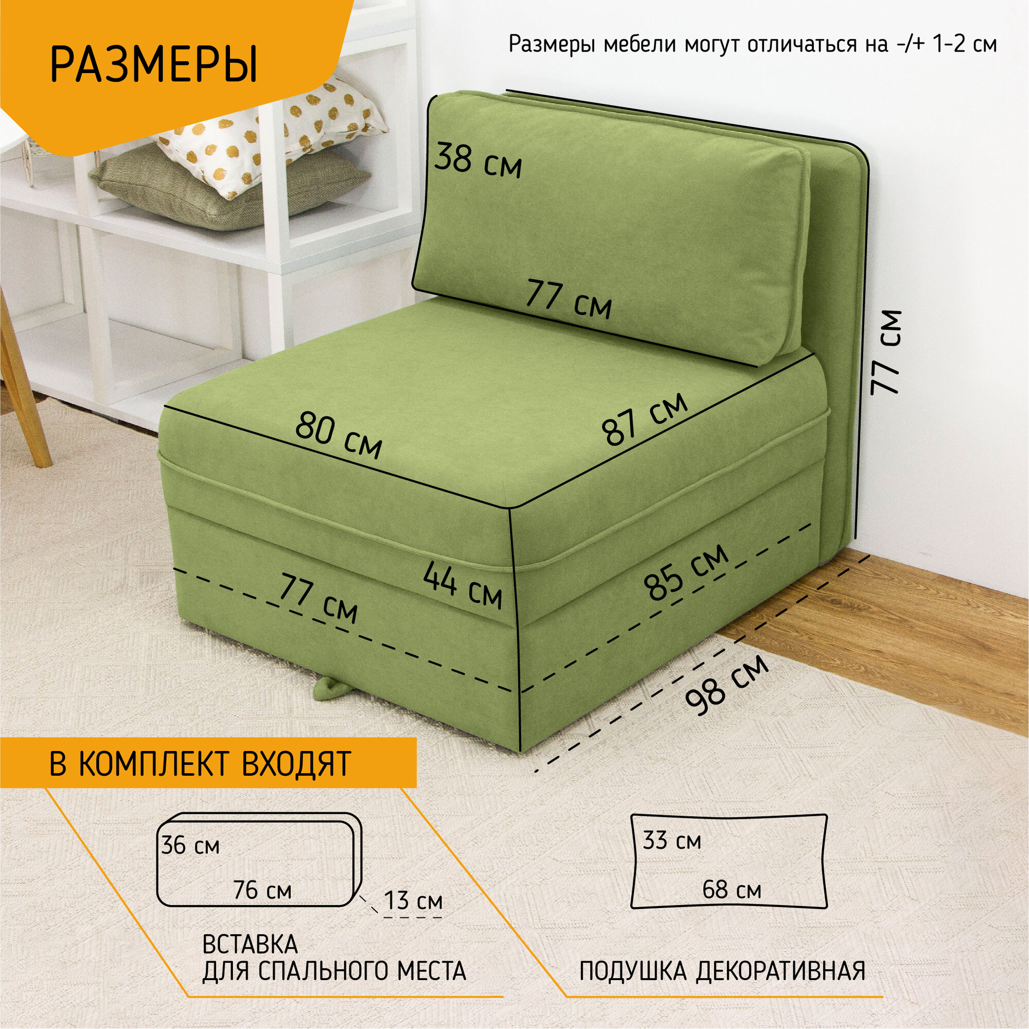 Диван-кровать KRASDIVAN Олаф 80х100 см, с ящиком для белья, велюр Бонита 14 салатовый информация: