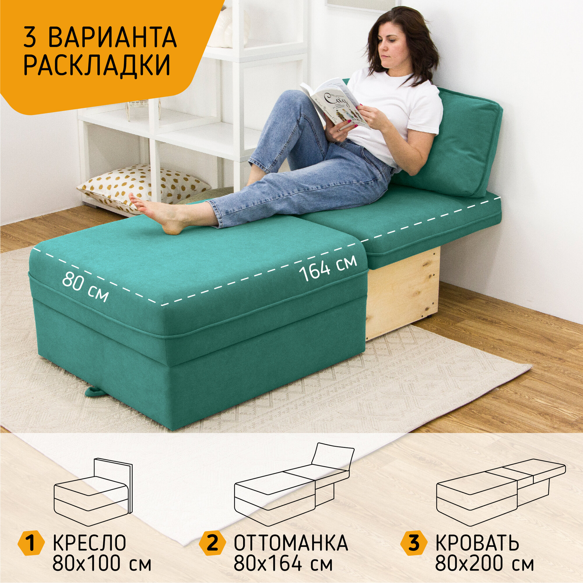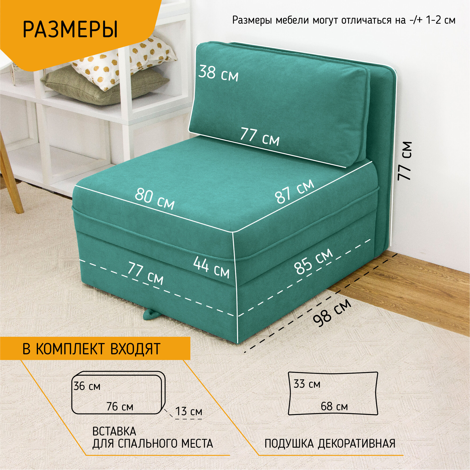 Диван-кровать KRASDIVAN Олаф 80х100 см, с ящиком для белья, велюр Бахрия 12 бирюзовый информация: