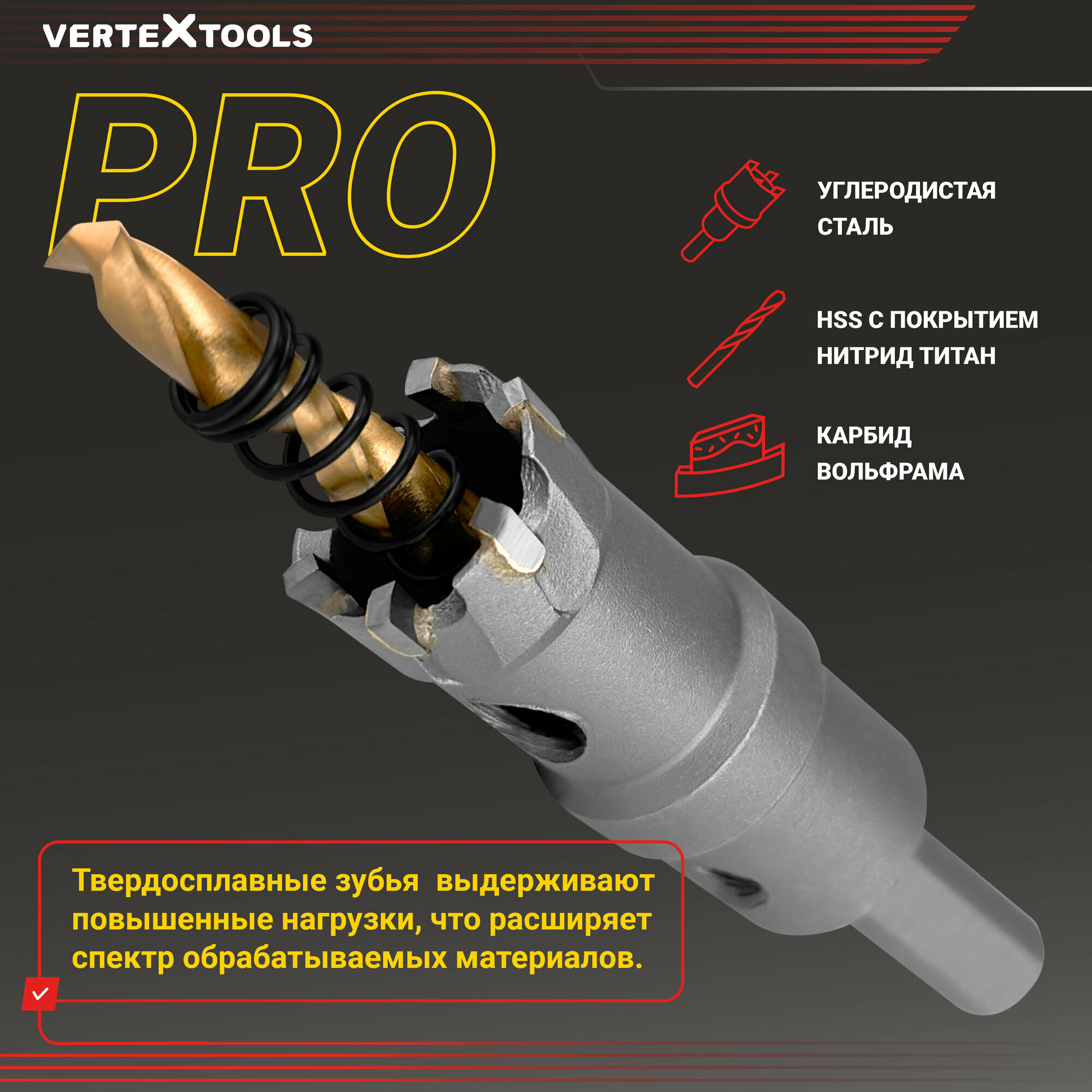Коронка по металлу твердосплавная с центрирующим сверлом vertextools 35мм 567 ₽