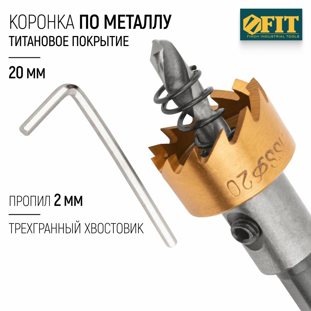 10 цен на Коронка кольцевая по металлу 20 мм, HSS сталь, титановое покрытие FIT 36860