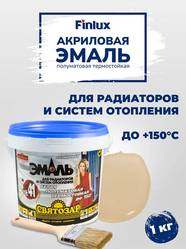 Краска термостойкая Finlux Святозар-41, эмаль для радиаторов, батарей и труб, без запаха, цвет слоновая кость, 1 кг 1 276 ₽
