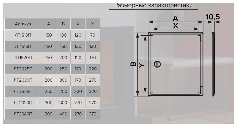 Ревизионный люк 150х200 накладной с ручкой, белый Evecs ЛТ1520П информация: