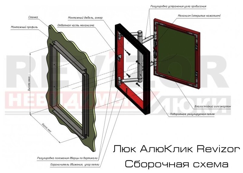 Ревизионный люк нажимной под плитку АлюКлик-М 60х40 см Revizor регулируемый скрытый стальной алюминиевый распашной настенный сантехнический 11 595 ₽