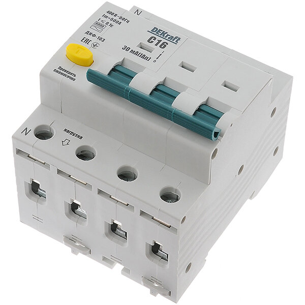 Отзывы на Выключатель автоматический дифференциального тока 4п (3P+N) C 16А 30мА тип AC 6кА ДИФ-103 DEKraft 16213DEK