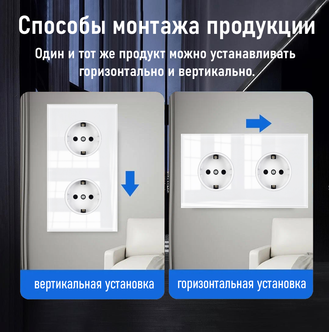 Отзывы на Розетка двойная 2 поста 16А 250В, со шторками, рамка закаленное стекло, Белый. F8