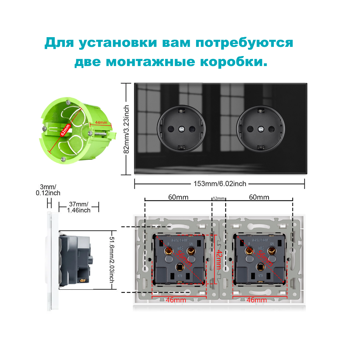 Отзывы на Розетка двойная 2 поста 16А 250В, со шторками, рамка закаленное стекло, чёрный. F8