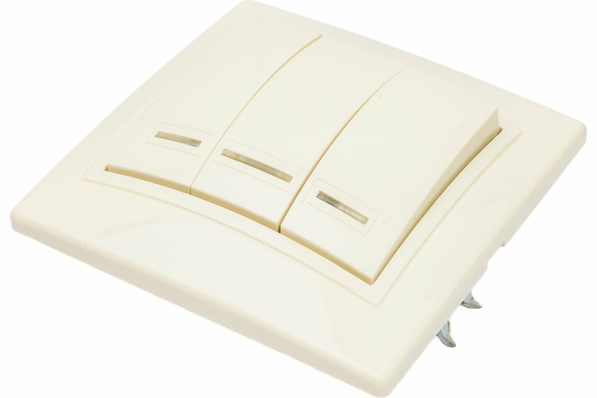 Выключатель трехклавишный с подсветкой слоновая кость (10 А, Таймыр, IP20) 395 ₽
