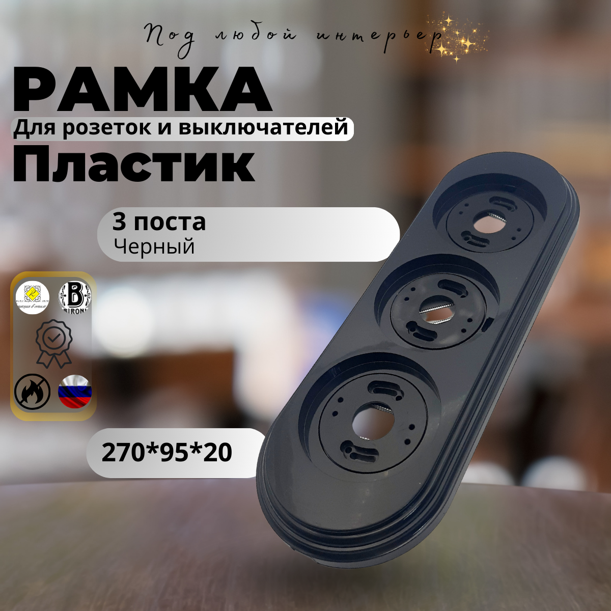 Рамка ретро BIRONI лизетта 3-местная, накладной монтаж , пластик, цвет: черный BF1-630-23 информация: