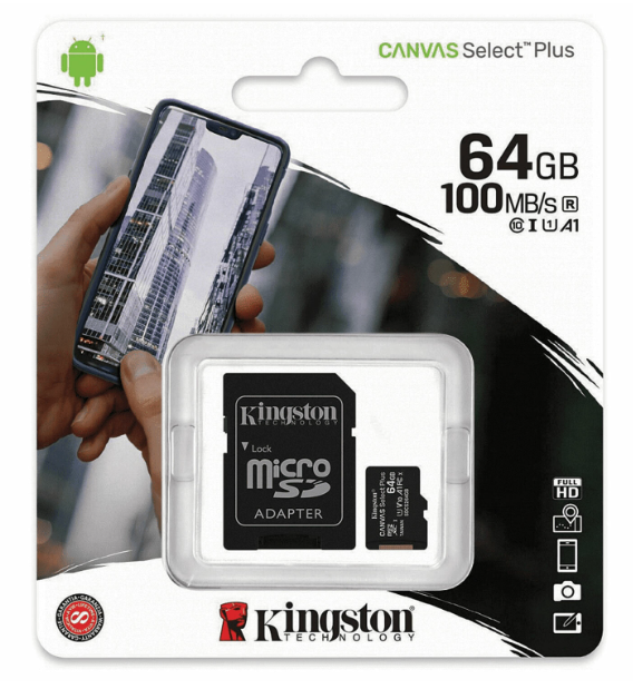Отзывы на Карта памяти MicroSD 64GB Kingston Class 10 Canvas Select Plus A1 (100 Mb/s) (SDCS2/64GB)