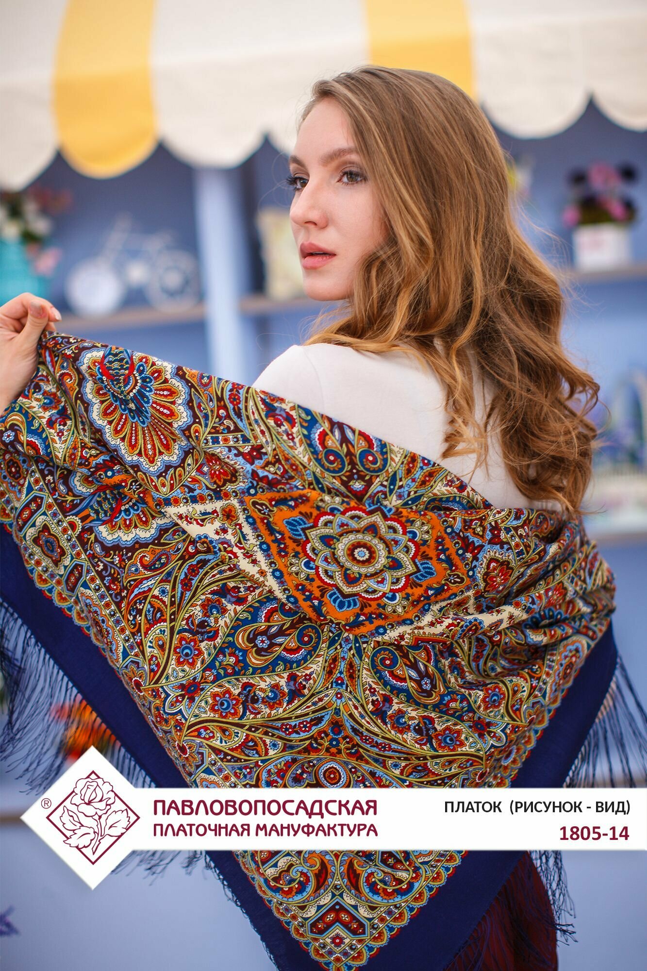 10 цен на Платок шерстяной с шелковой бахромой "Рождественский пряник" Павловопосадский платок, рисунок 1805, вид 14, размер 110х110 см