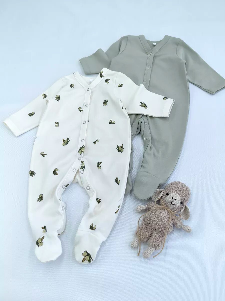 Комбинезон, слип для ребенка СветЛена, размер 80, комплект из 2-х шт, белый и оливковый с принтом Олива 1 199 ₽