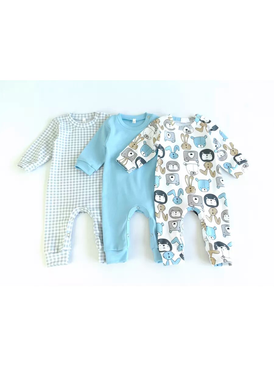 Комбинезон СветЛена Одежда для новорожденных, грудничков и младенцев СветЛена, открытая стопа, комплект из 3 шт., размер 62, голубой/серый 1 743 ₽