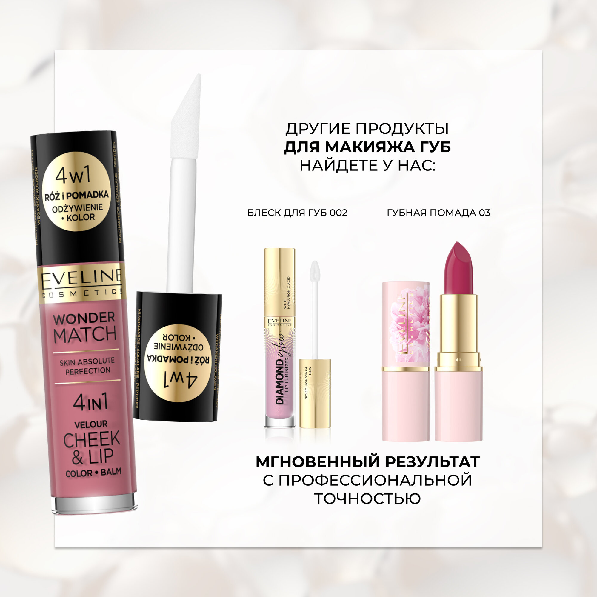 10 цен на Помада-румяна для губ и лица EVELINE WONDER MATCH жидкая тон №02