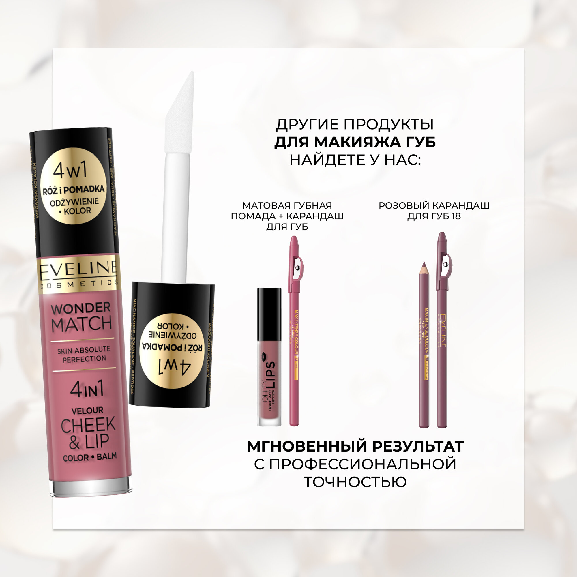 10 цен на Помада-румяна для губ и лица EVELINE WONDER MATCH жидкая тон №04