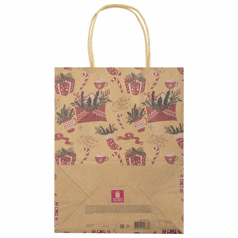 Подарочный пакет Золотая сказка 10 штук новогодний 26x13x32см, "Christmas Kraft" 883 ₽