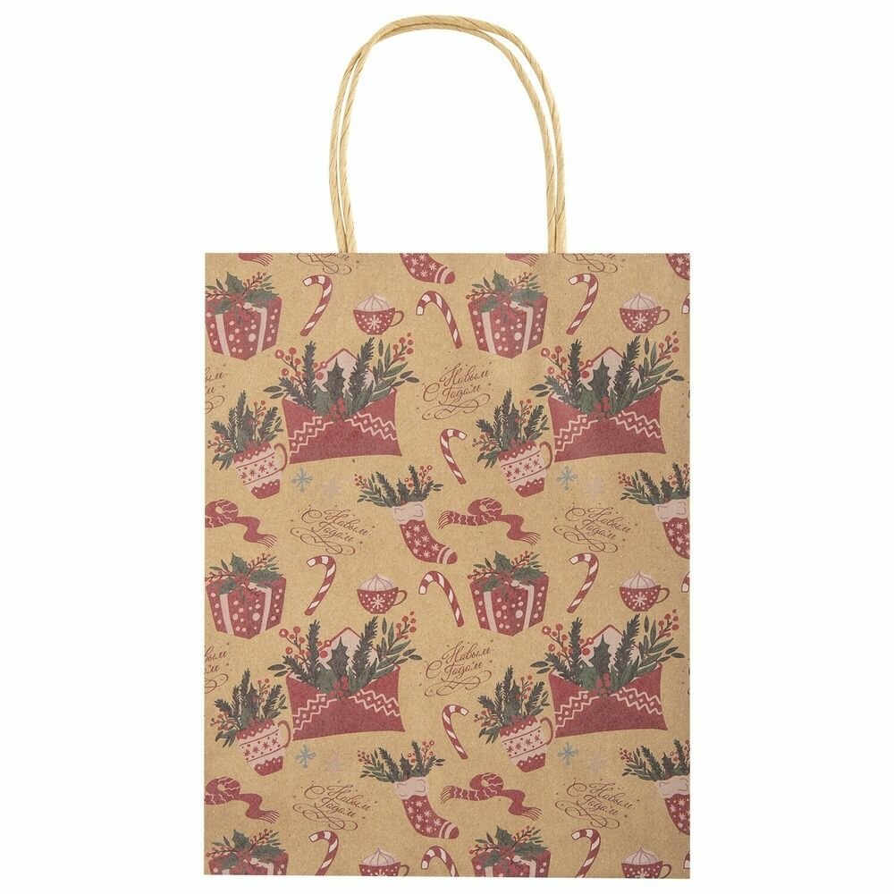 Подарочный пакет Золотая сказка 10 штук новогодний 26x13x32см, "Kraft Xmas Tree" 883 ₽