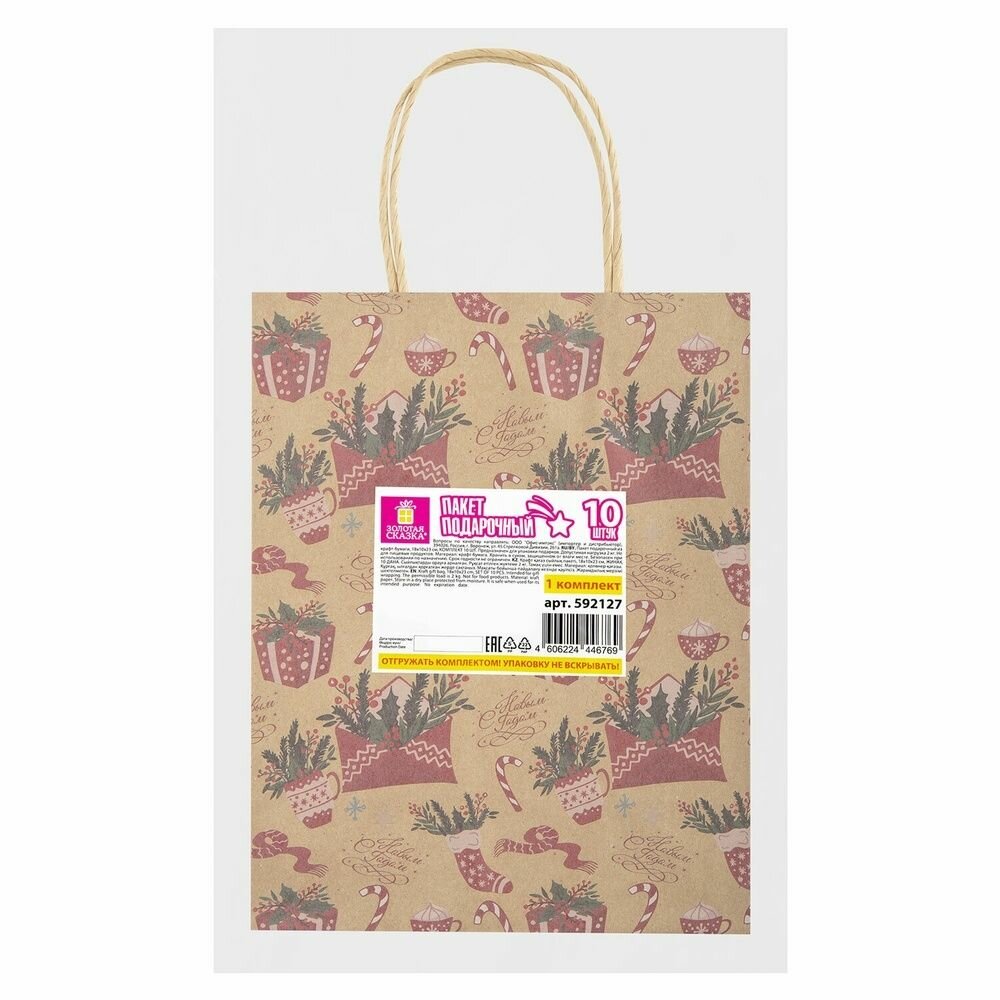 Пакет подарочный комплект 10 штук, новогодний, 26x13x32 см, "Christmas Kraft", золотая сказка, 591961 414 ₽