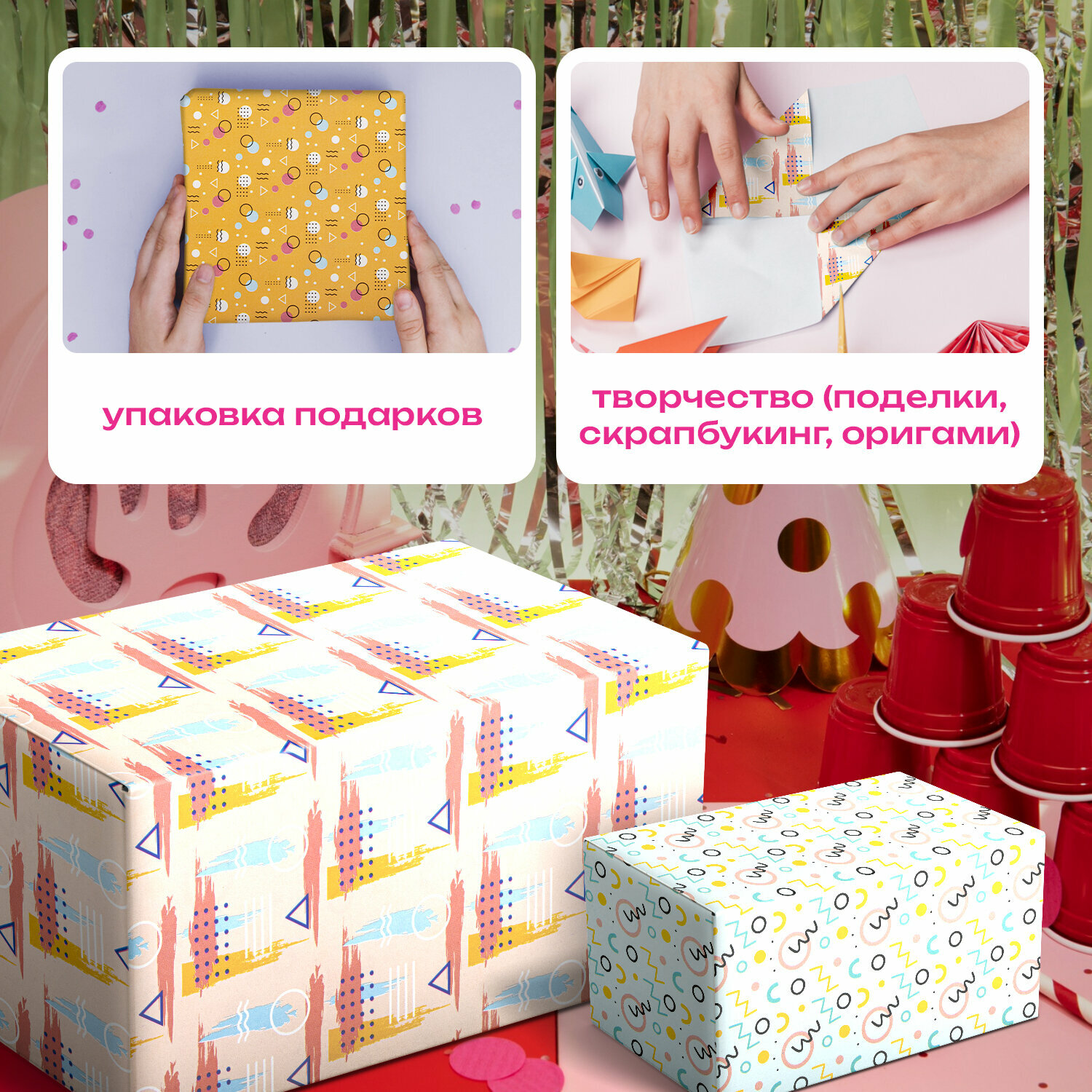 Отзывы на Упаковочная бумага 70х100 см для мелованная крафтовая, набор 3 штуки, 3 дизайна, подарочная упаковка на новый год 2025, Золотая Сказка, Memphis, 592067