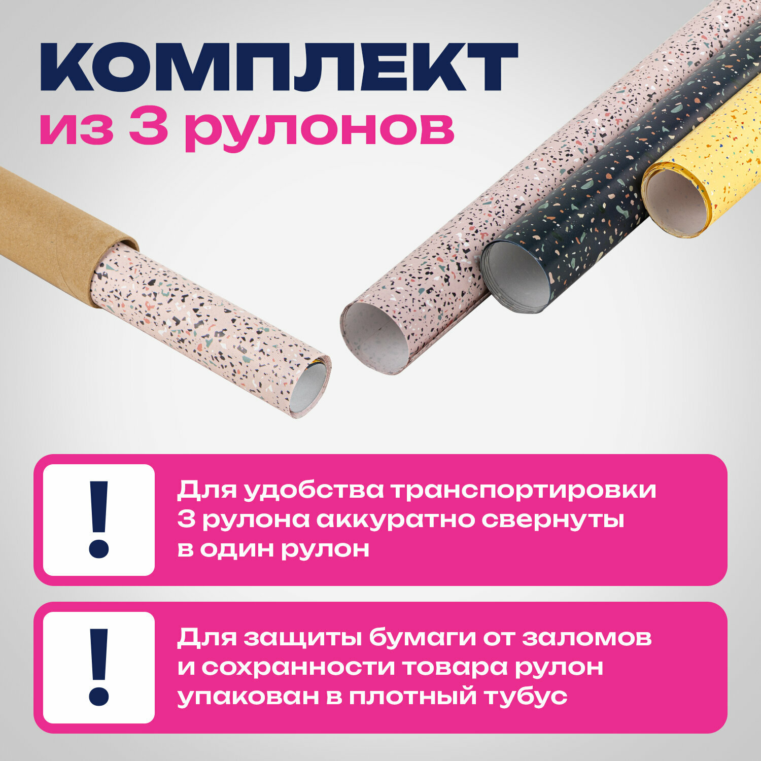 Отзывы на Бумага упаковочная мелованная набор 3шт "Terrazzo" 70*100см, 3 дизайна, золотая сказка, 592066