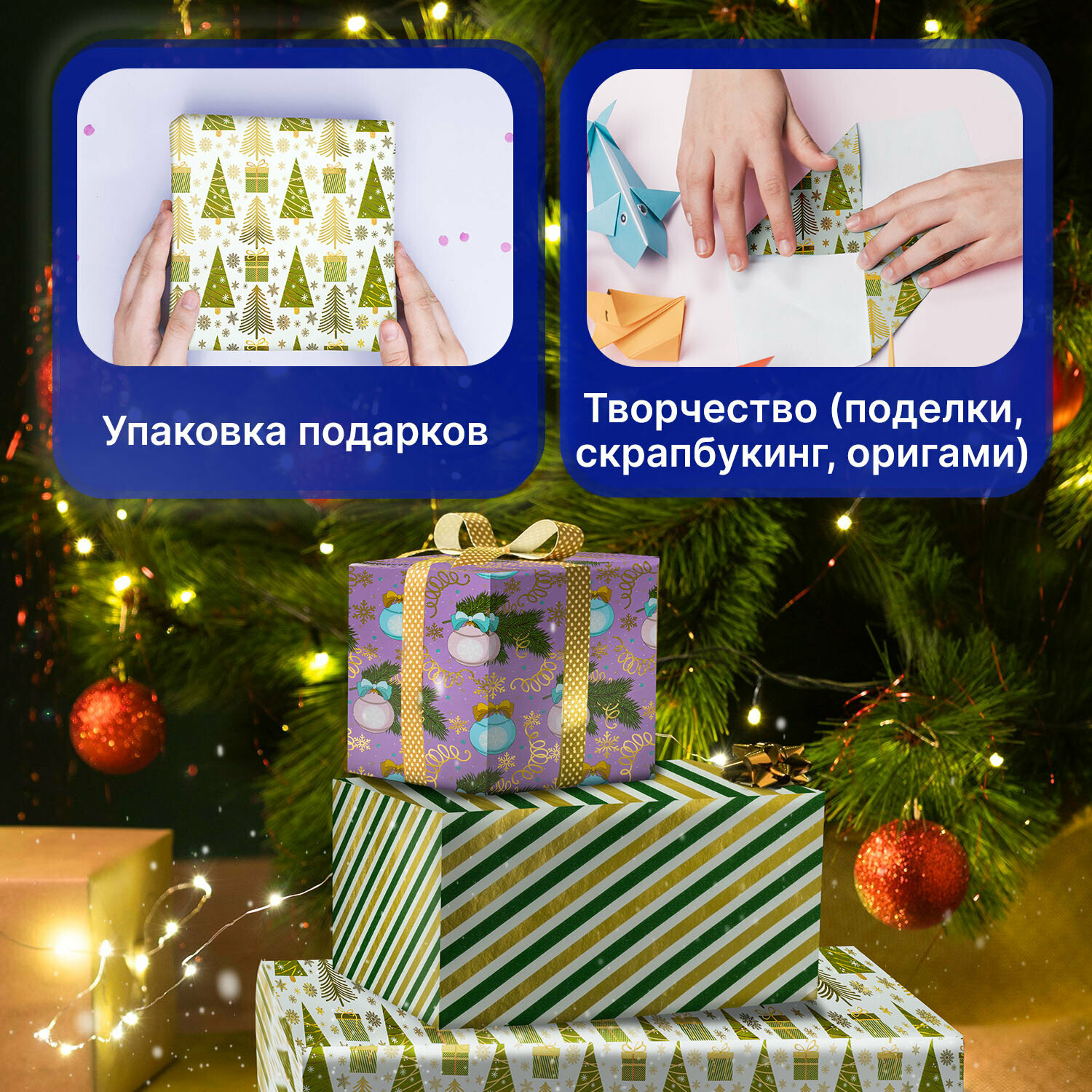 Отзывы на Упаковочная бумага 70х100 см, для новогодних подарков с эффектами набор 3 штуки, подарочная упаковка на новый год 2025, Золотая Сказка NY Pattern, 592187