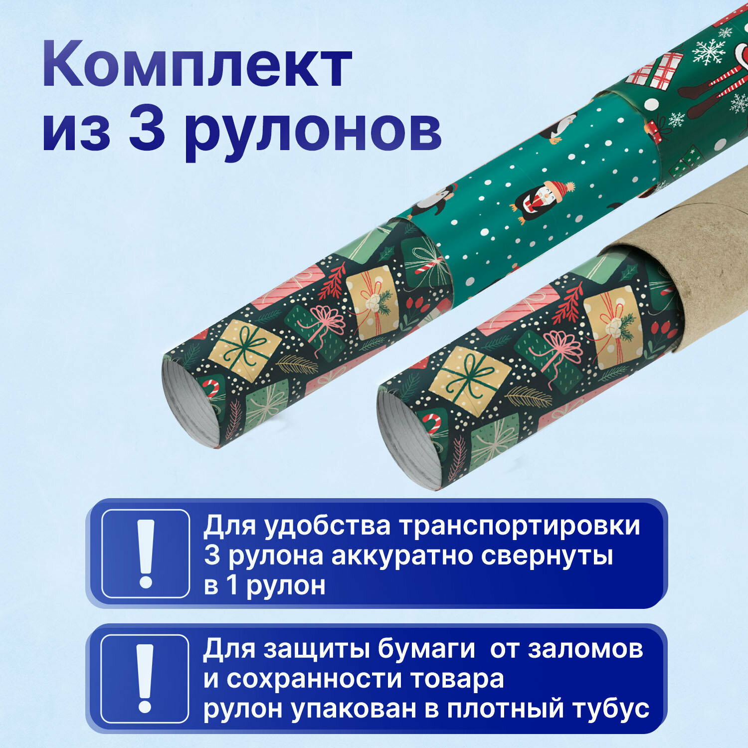 10 цен на Бумага упаковочная новогодняя набор 3 шт., "Green Collection", 70х100 см, 3 дизайна, золотая сказка, 592061