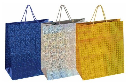 Пакет подарочный (1 штука) 45x13x33 см, золотая сказка голография, ассорти 3 цвета, 606609, 12 шт, 606609