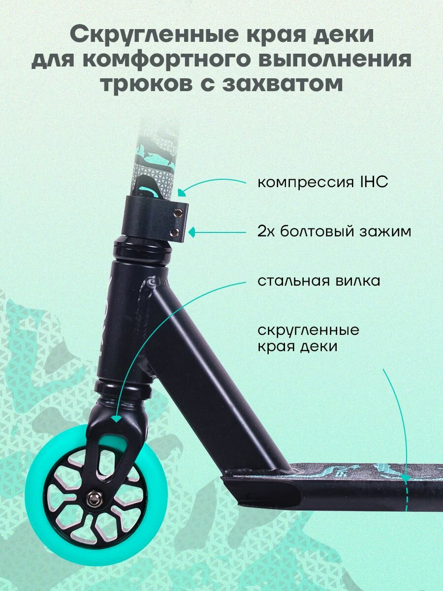 Самокат трюковой YOKI SPIN изумрудный информация: