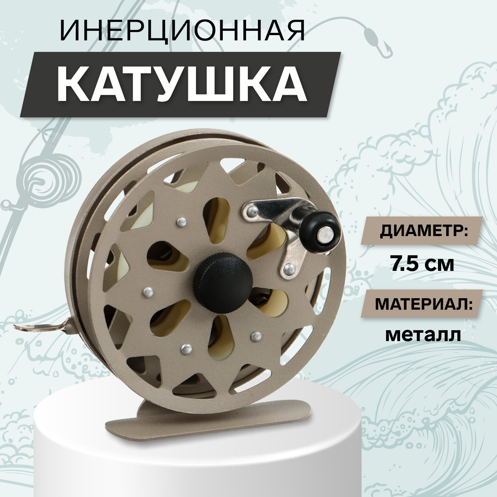Отзывы на Катушка для рыбалки КНР инерционная, металл, диаметр 7,5 см, цвет коричневый