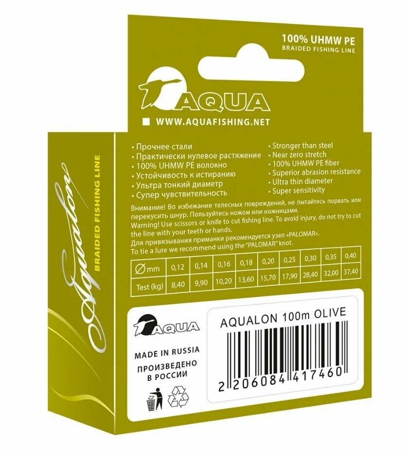 Плетеный шнур для рыбалки AQUA Aqualon Olive 0,18mm 100m информация: