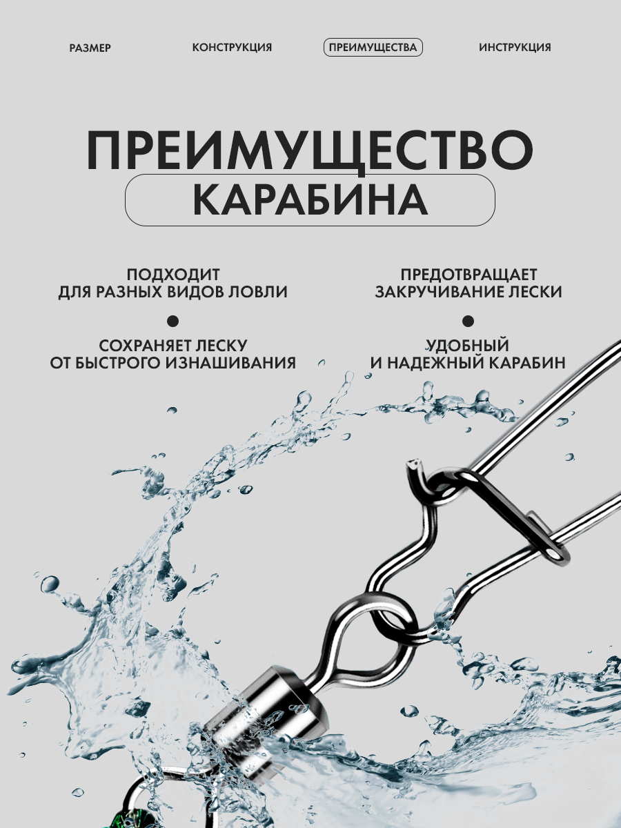 Отзывы на Набор карабинов с вертлюгом для рыбалки, металлическая застежка рыболовная, 50 штук