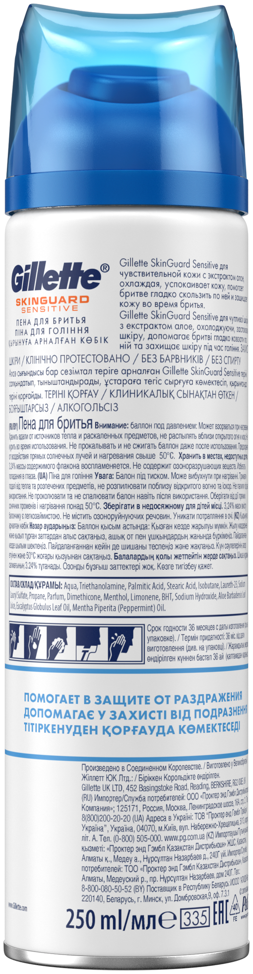 Пена для бритья Gillette SkinGuard Sensitive 250 мл. информация: