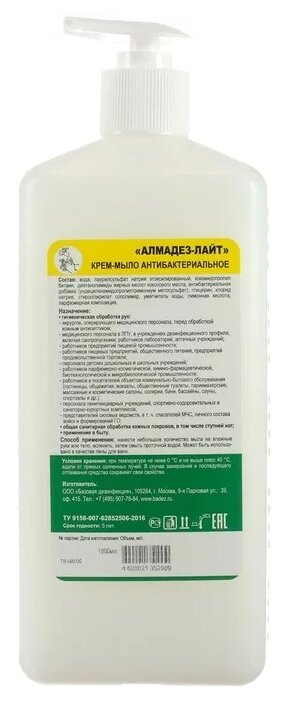 Алмадез-Лайт Мыло-крем антибактериальное 1л (Насос-дозатор) МАЛ-04 информация:
