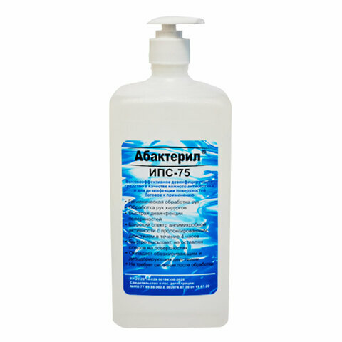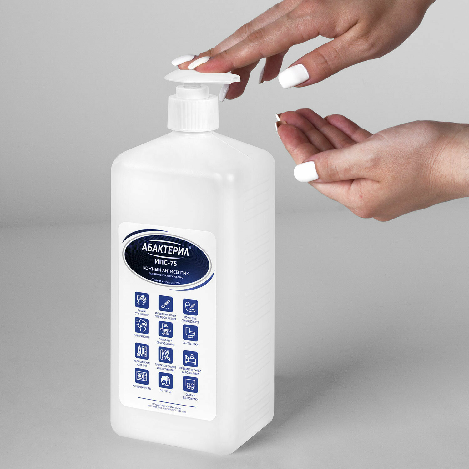 10 цен на Упаковка 2 шт. Антисептик для рук и поверхностей спиртовой (75%) с дозатором 1 л, АБАКТЕРИЛ-ИПС-75, дезинфицирующий, жидкость