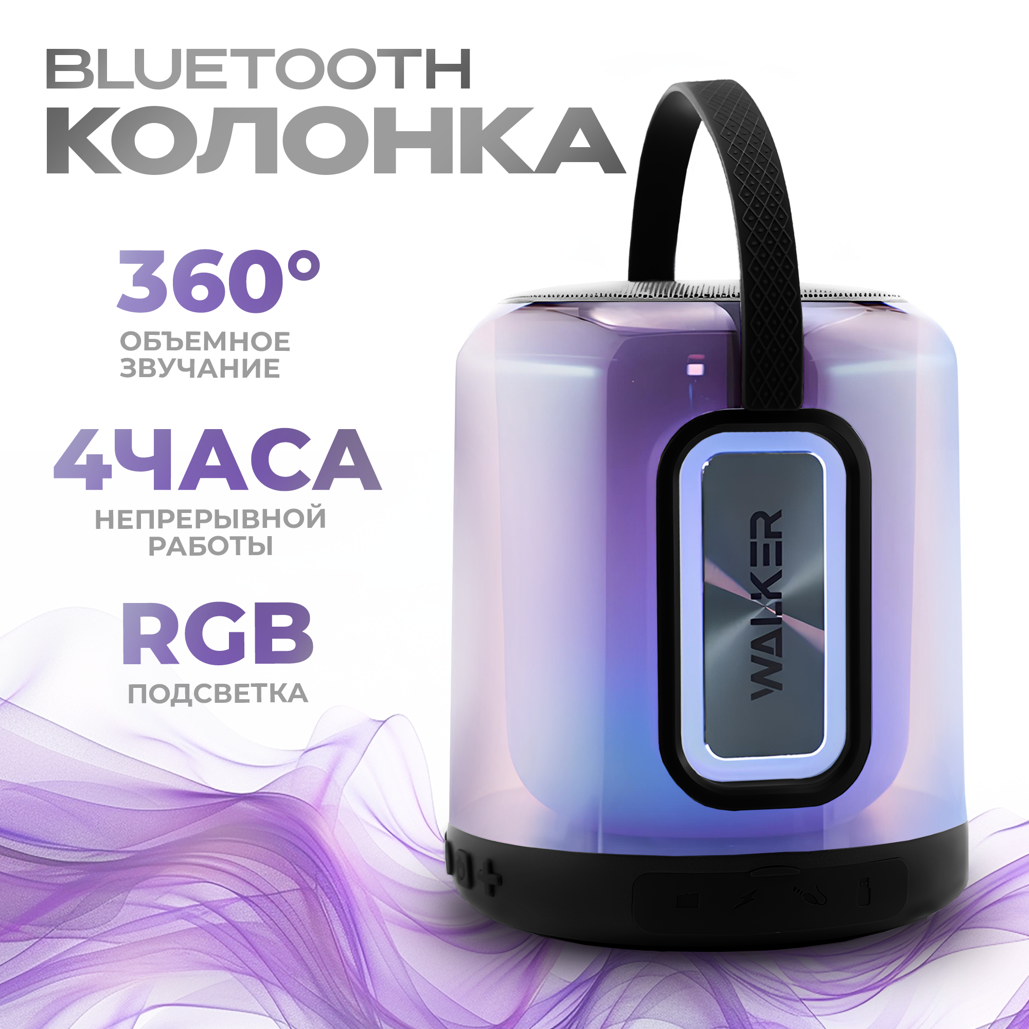 Портативная колонка, WALKER, WSP-180, 8Вт, Bluetooth 5.3, RGB-подсветка, TWS, колонка jbl, колонка блютуз, колонка, колонка портативная, черная 3 098 ₽