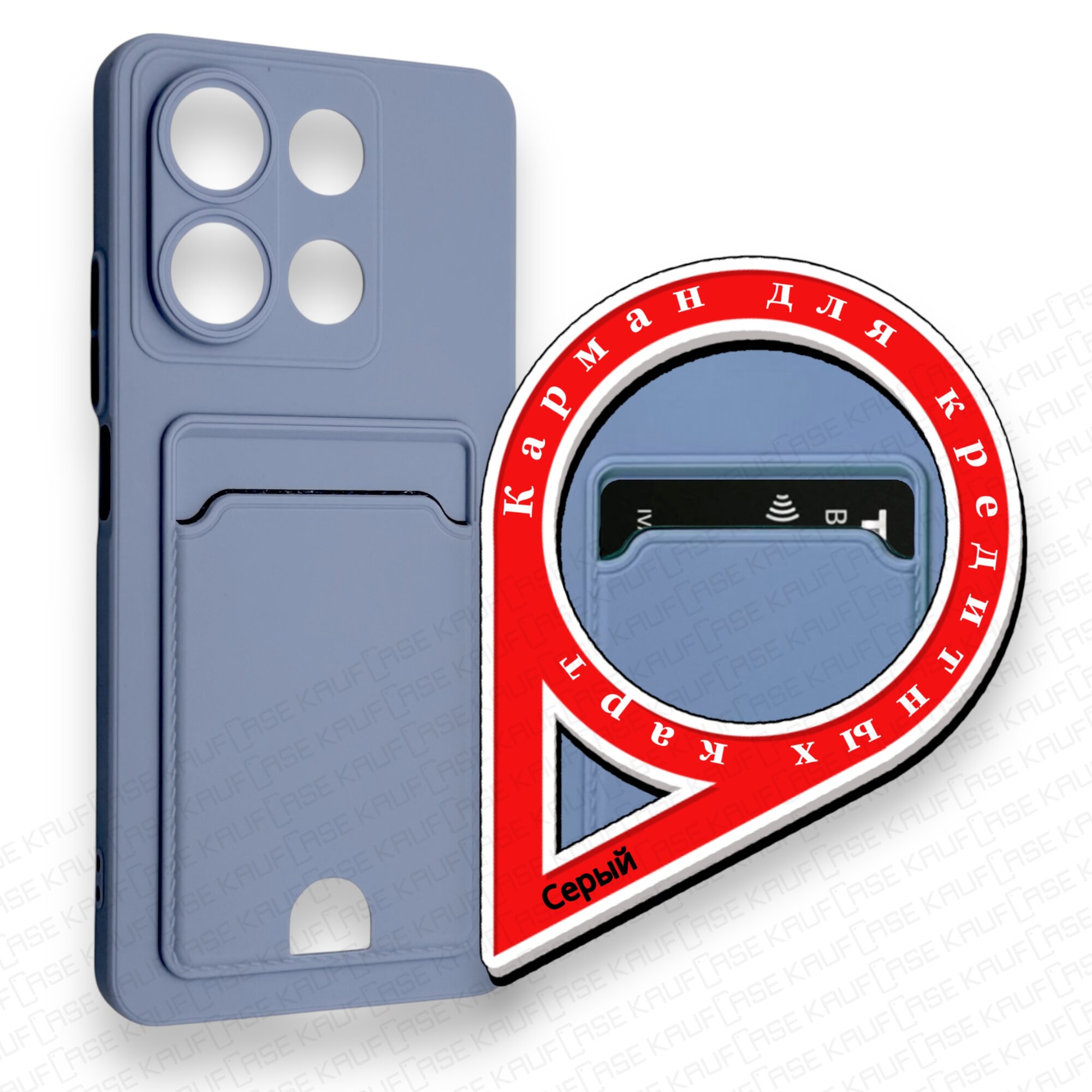 Силиконовый матовый чехол на Xiaomi Redmi Note 13 Pro 4G/ Poco M6 Pro (6.67"), серый. Карман для пластиковых карт информация:
