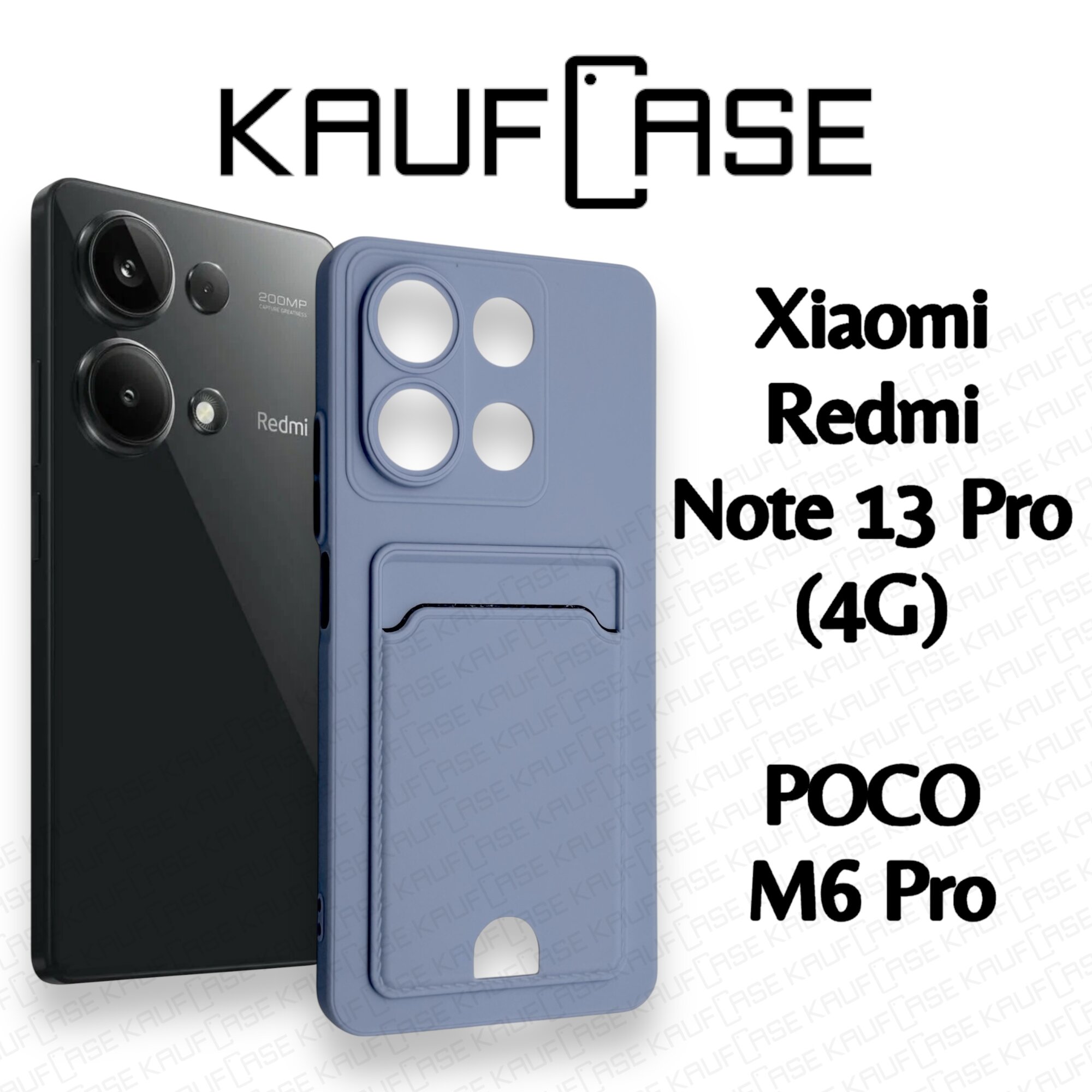 Отзывы на Силиконовый матовый чехол на Xiaomi Redmi Note 13 Pro 4G/ Poco M6 Pro (6.67"), серый. Карман для пластиковых карт