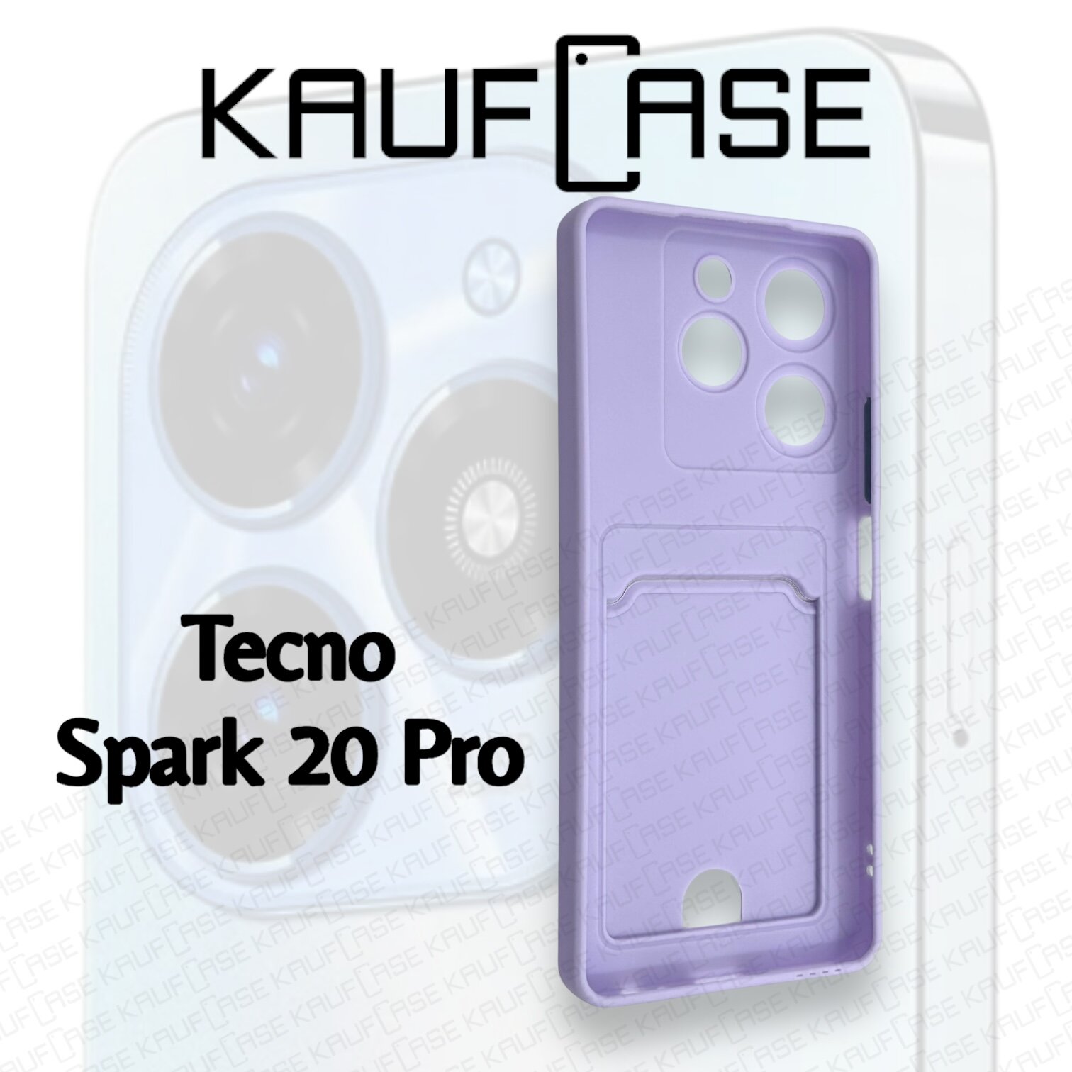 Силиконовый матовый чехол на Tecno Spark 20 Pro (6.78"), сиреневый. Карман для пластиковых карт информация: