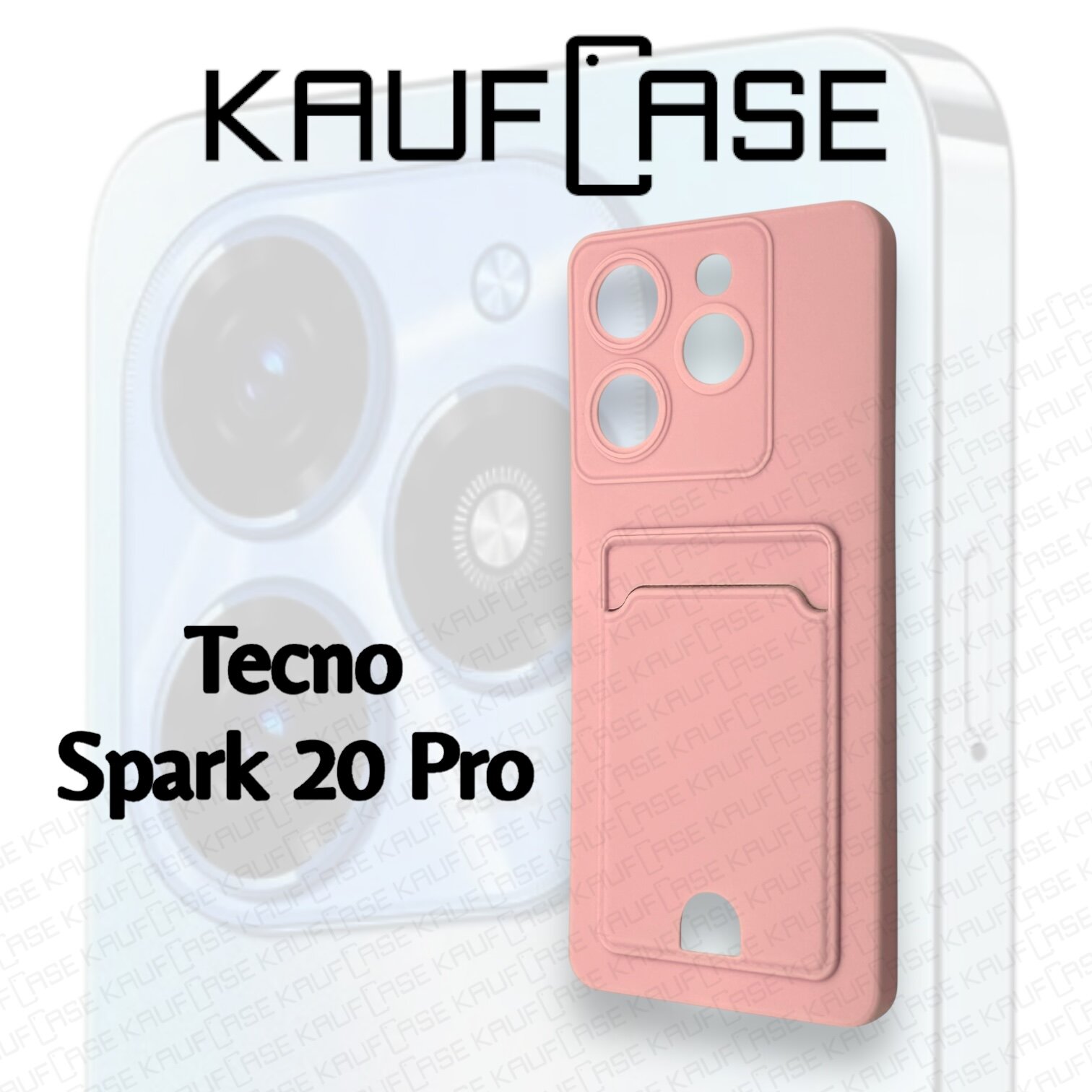 Силиконовый матовый чехол на Tecno Spark 20 Pro (6.78"), розовый. Карман для пластиковых карт информация: