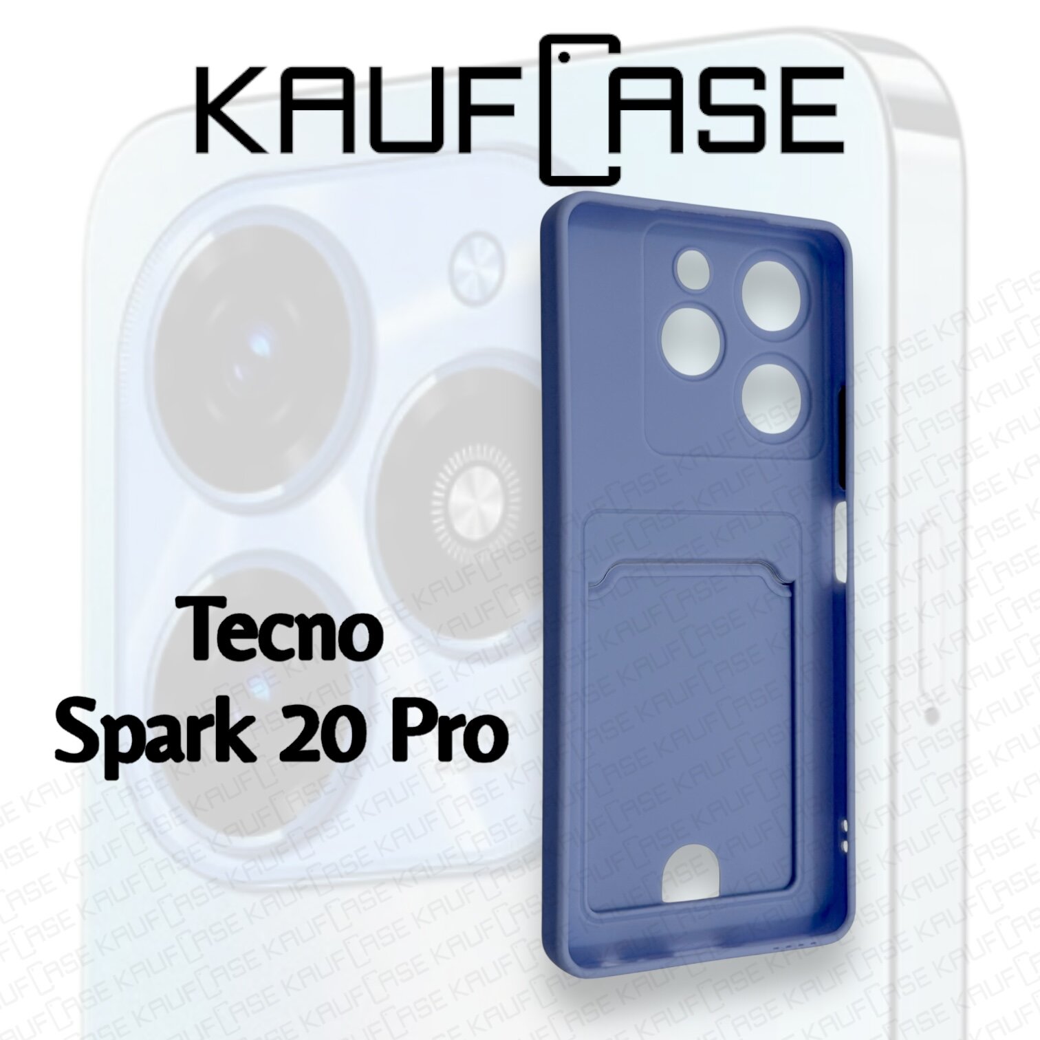 Силиконовый матовый чехол на Tecno Spark 20 Pro (6.78"), темно-синий. Карман для пластиковых карт 349 ₽
