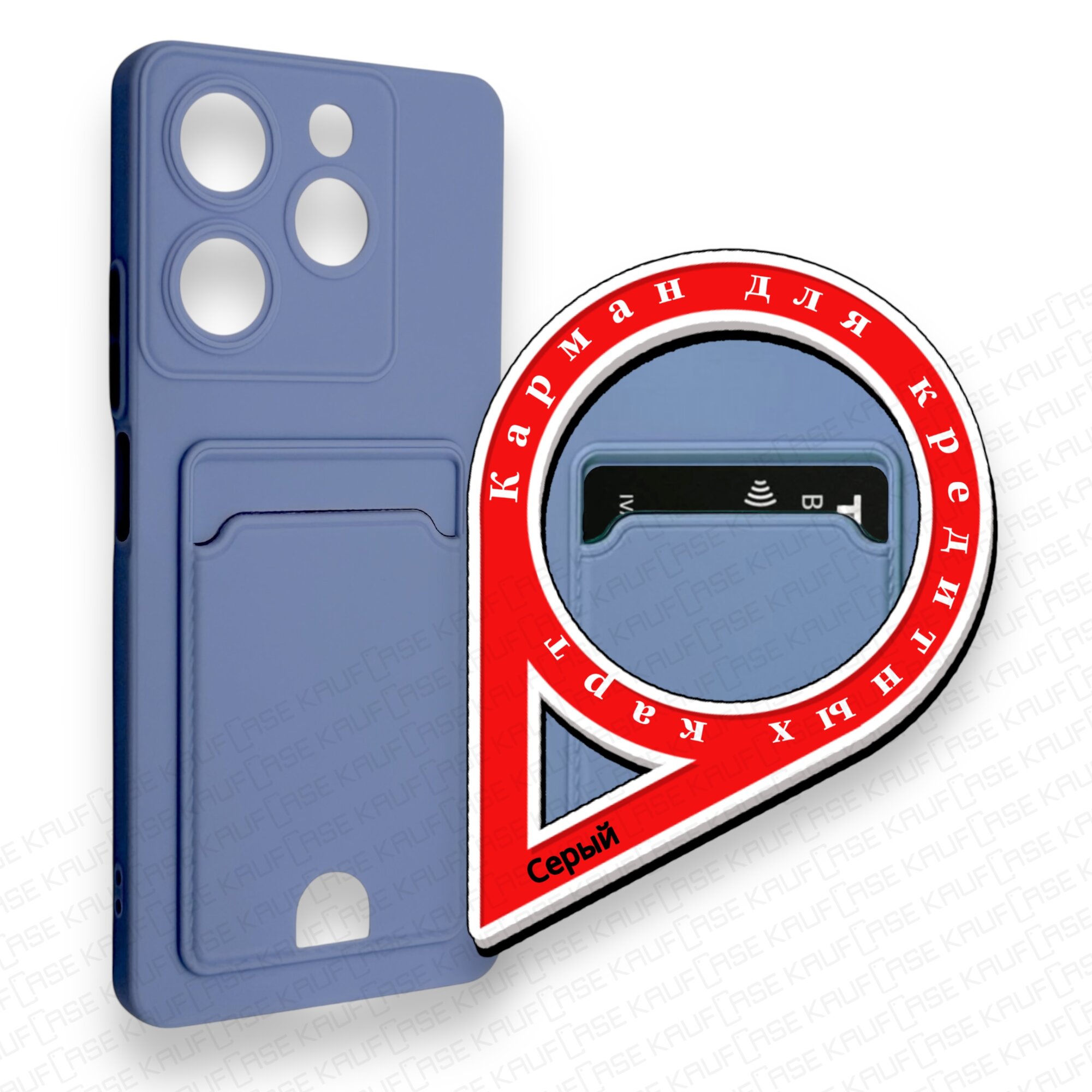Отзывы на Силиконовый матовый чехол на Tecno Spark 20 Pro (6.78"), серый. Карман для пластиковых карт