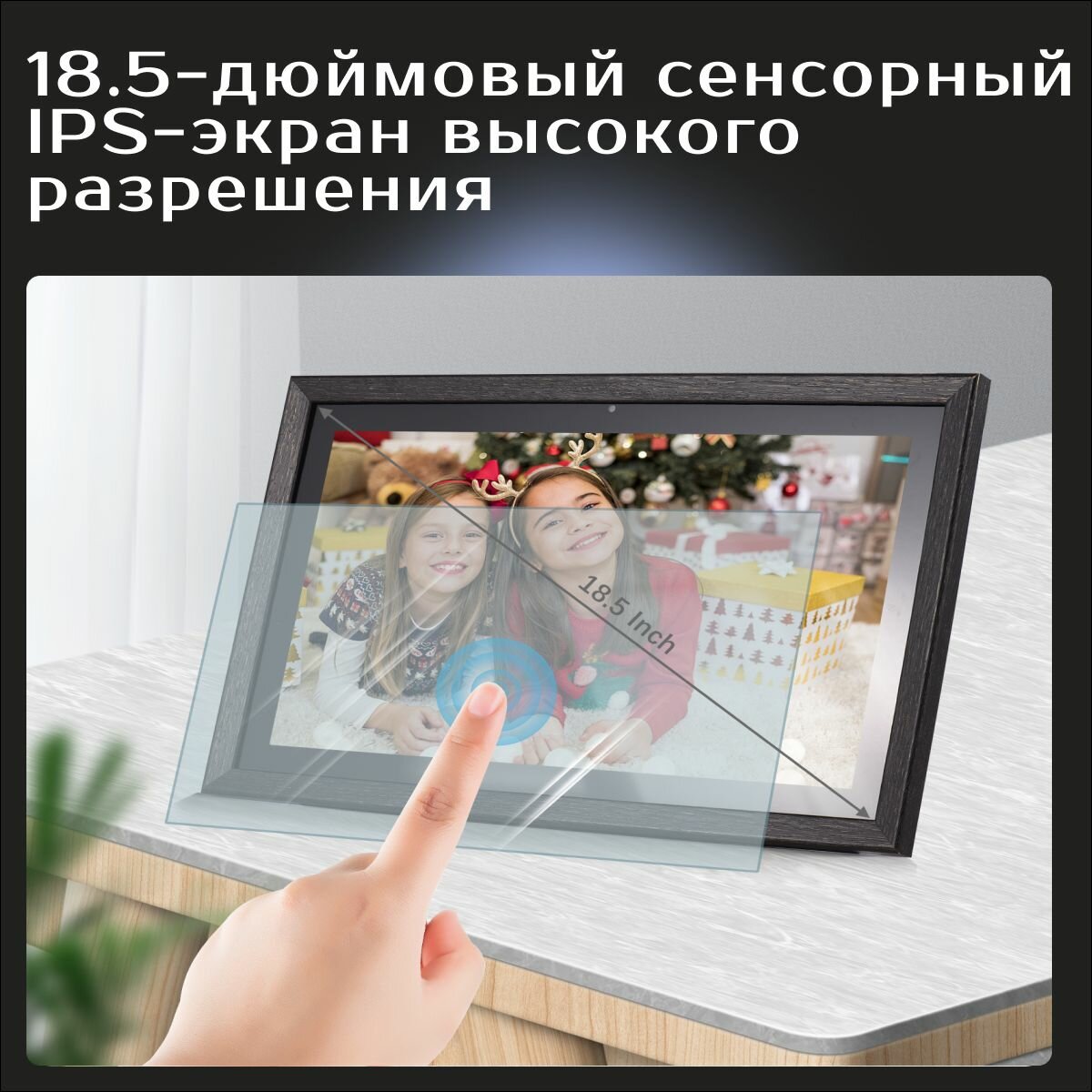 Умная Цифровая фоторамка FRAMEO, экран 18.5 дюйм Темно-коричневая.TOUCH SCREEN SMART WI-FI Photo Frame Сенсорный экран, фото, видео и звук. Работает по ВАЙ-ФАЙ. 1280x800 пикселей. информация: